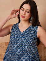 InWeave Blue Pyramid Kantha High Low W/S Top - Distacart
