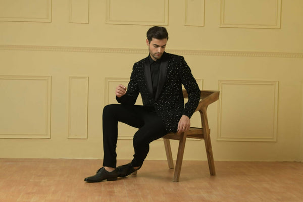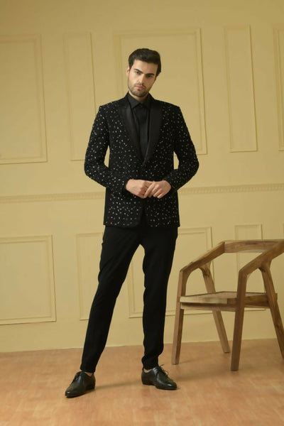 Featuring Burgundy coloured single buttoned tuxedo with black satin lapels.The satin lapels add a subtle sheen & give you an elegant look. The two piece outfit can be worn at parties or wedding reception.All our Tuxedos are custom made to fit to give you the best look & comfort.