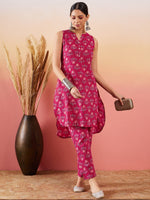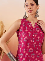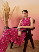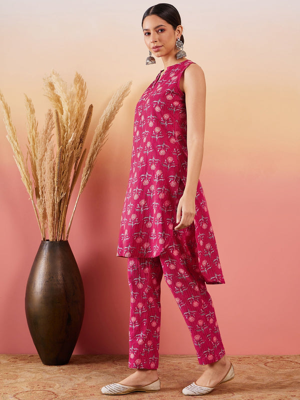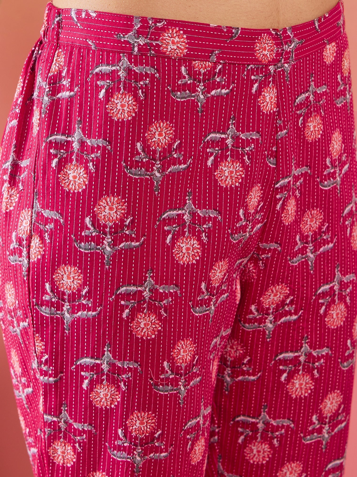 InWeave Red Kantha Print Mandarin V Neck Button Kurta Pant Set