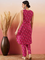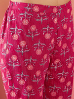 InWeave Red Kantha Print Mandarin V Neck Button Kurta Pant Set - S