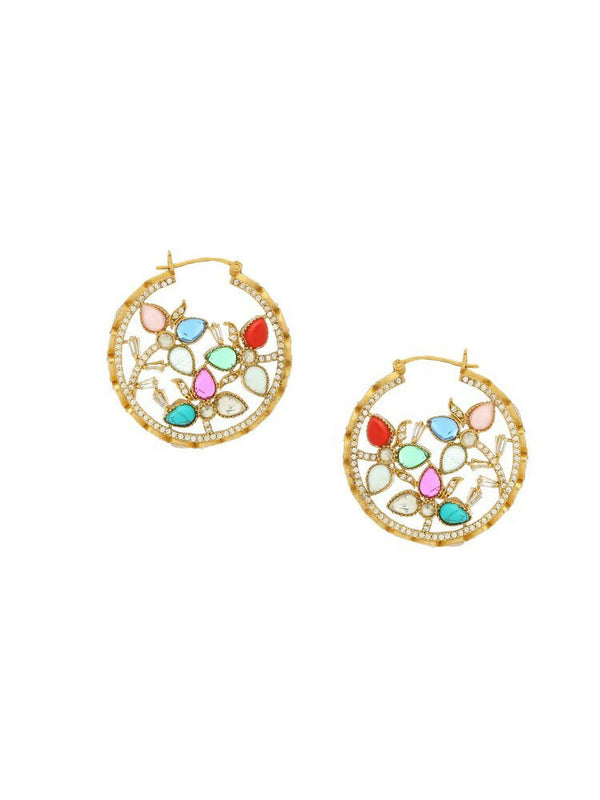 Navratan Round Earrings - Ruby RaangAbout the ProductThese Navratan multicoloured round earrings are a vibrant celebration of tradition and eleganc...