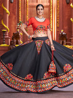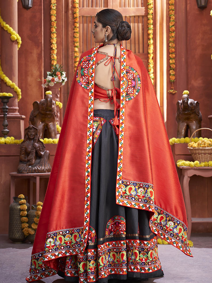 Myra Black Art Silk Gamthi Work Designer Lehenga
