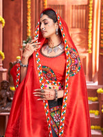 Black Art Silk Gamthi Work Designer Lehenga features a art silk blouse with art silk lehenga and dupatta. Embroidery have gamthi work with real mirror work and patch work. This Style is made in India and checked by hand to ensure high quality.