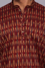 Bluebird Men's Maroon Ikat Printed Short Kurta