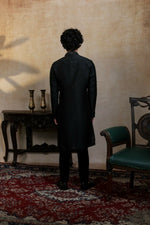 Falling Raw Silk Black Kajal Phool Kurta Set By Hilo Design