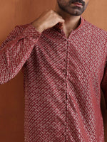 trueBrowns Men's Rust Cotton Dobby Short Kurta - S