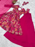 Evanik Rani Pink Pure Romance Silk With Print Kediya With Palazzo SuitAbout the Product: Length of Kurta: 40 Style(Anarkali, Flared, Straigth): K...