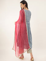Blue, white and red printed Kurta with Palazzos & dupatta