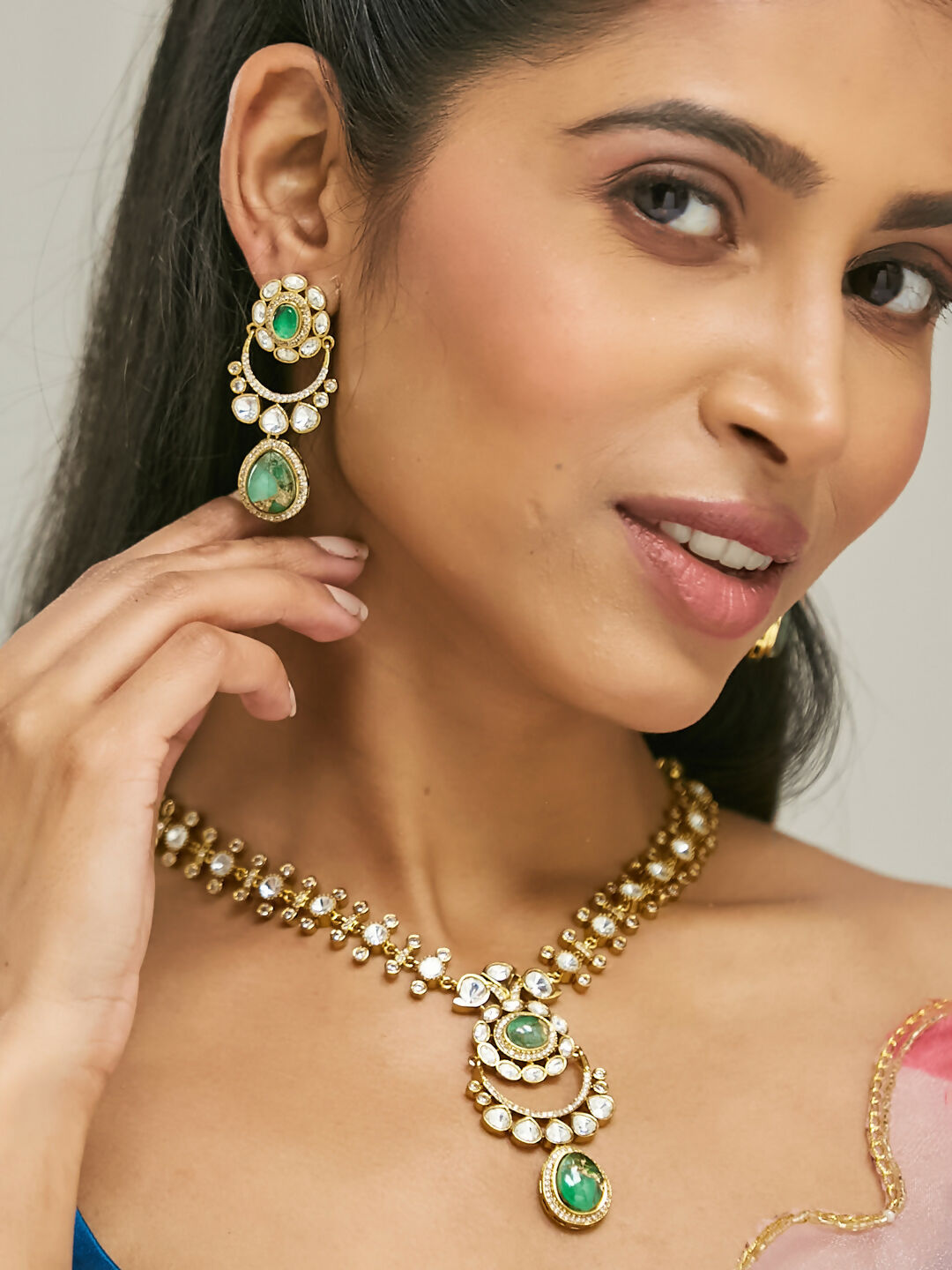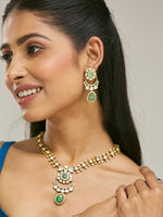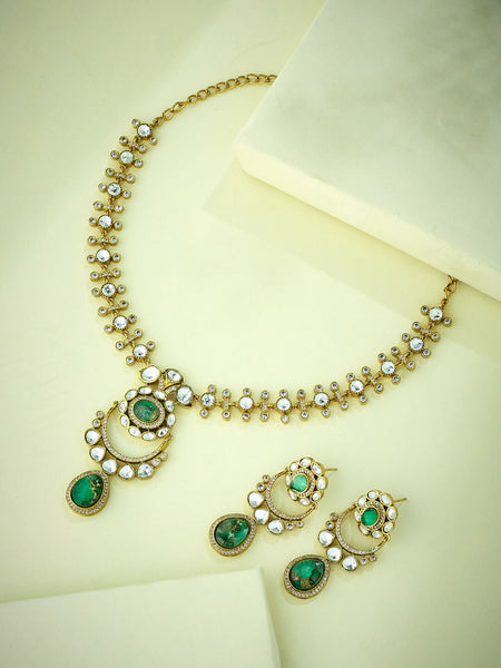 Nuyug 22K Gold-Plated Kundan Studded Faux Jasper Stone Necklace Set