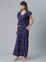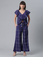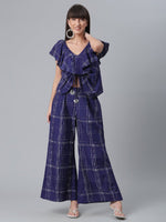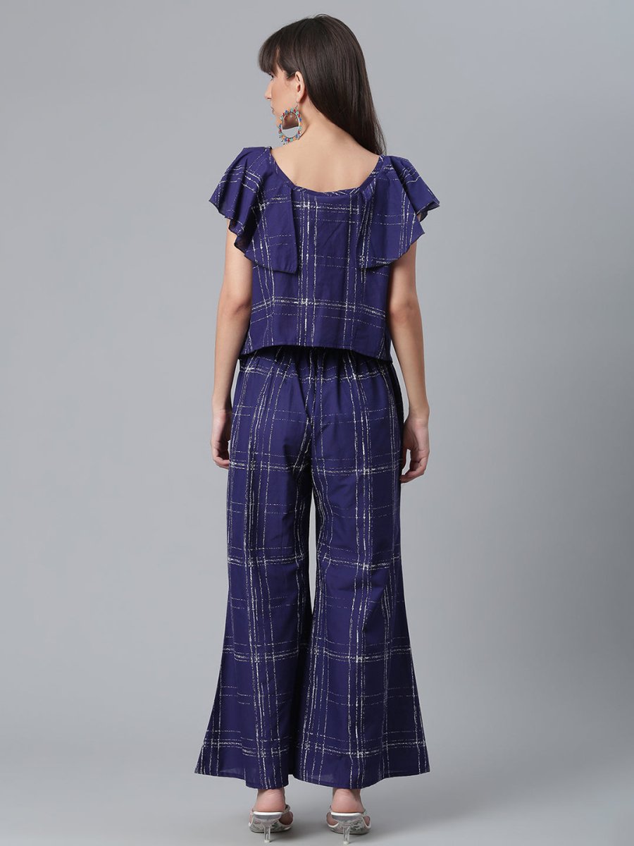 Ahalyaa Navy Blue & Off-White Pure Cotton Checked Top with Palazzo - XS