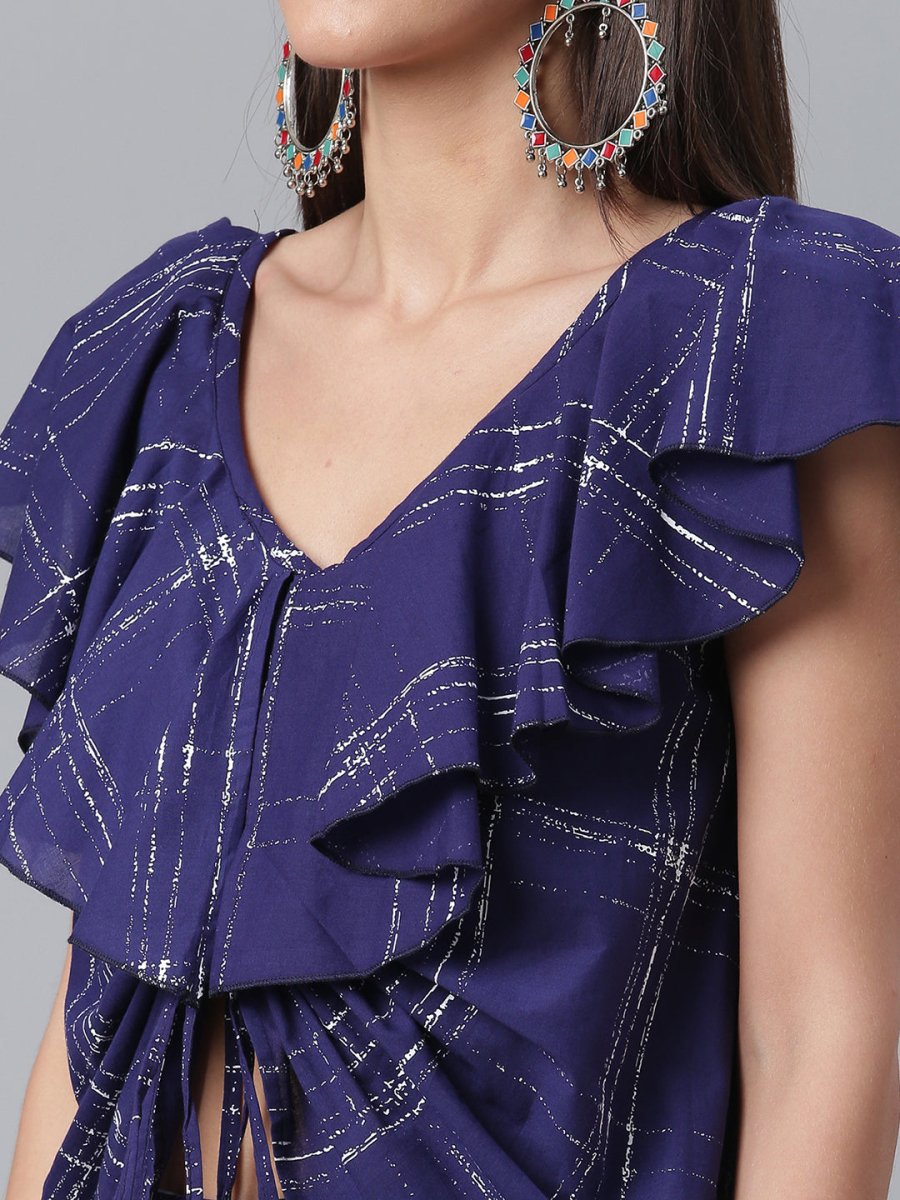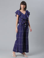 Ahalyaa Navy Blue & Off-White Pure Cotton Checked Top with Palazzo