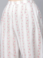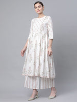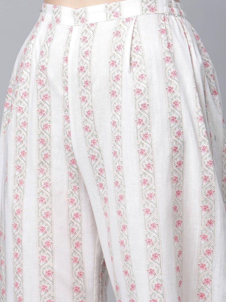 Ahalyaa Women's Off White Pure Cotton Printed Kurta Palazzo Set