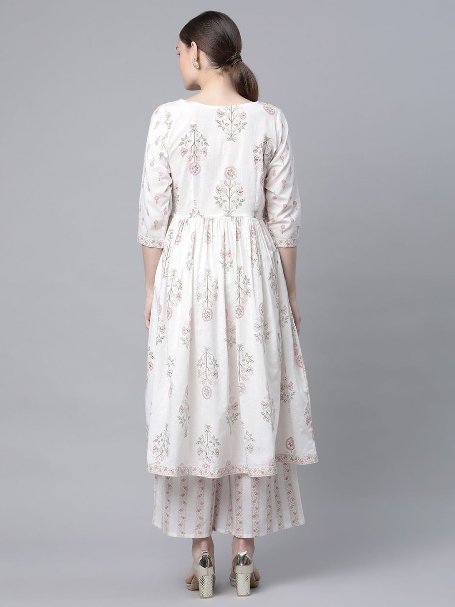 Ahalyaa Women's Off White Pure Cotton Printed Kurta Palazzo SetThis clothing set consists of Kurta Palazzo Set. made from Pure Cotton fabric, it ha...