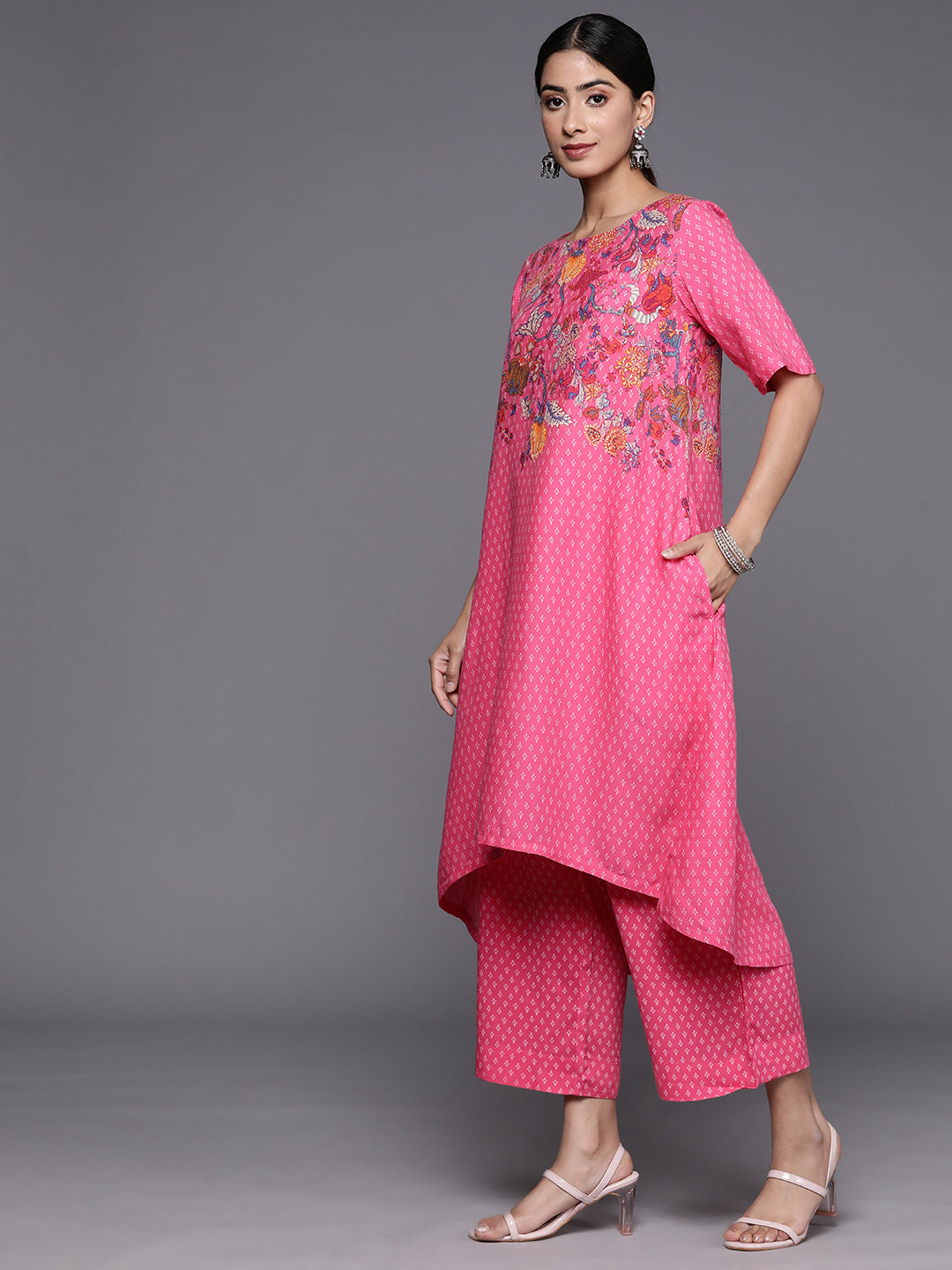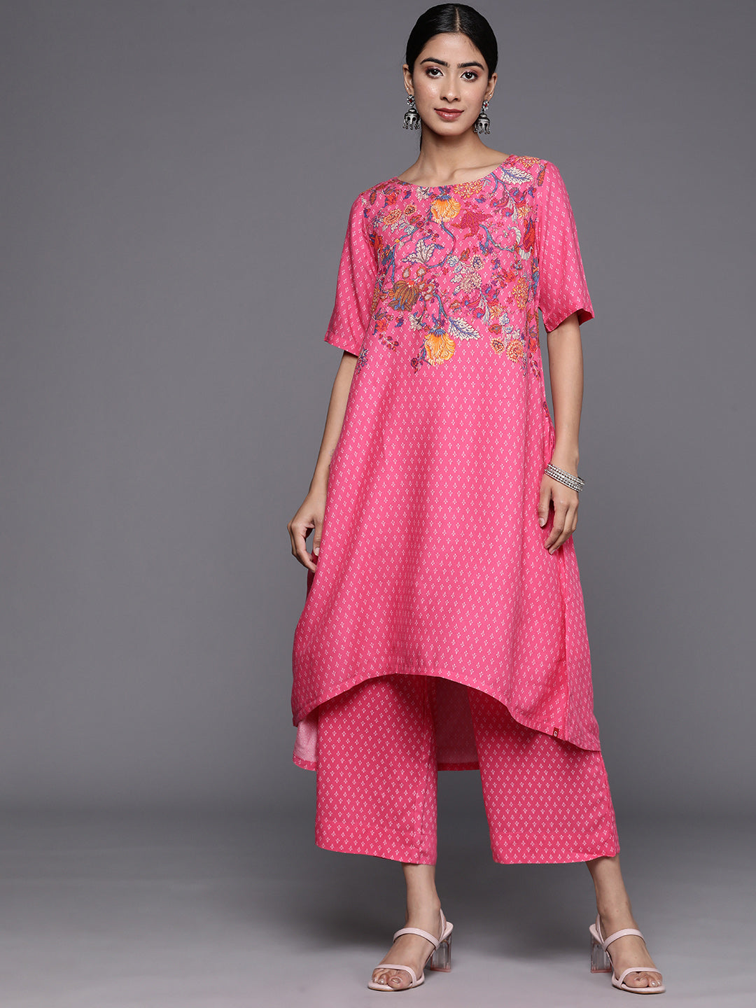 Biba Ethnic Motifs Printed High-Low Kurta with Palazzos Product Details Pink printed Kurta with PalazzosKurta design: Ethnic motifs printed A-...