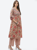 Biba Women Plus Size Beige Floral Printed A-line Kurta with Palazzos
