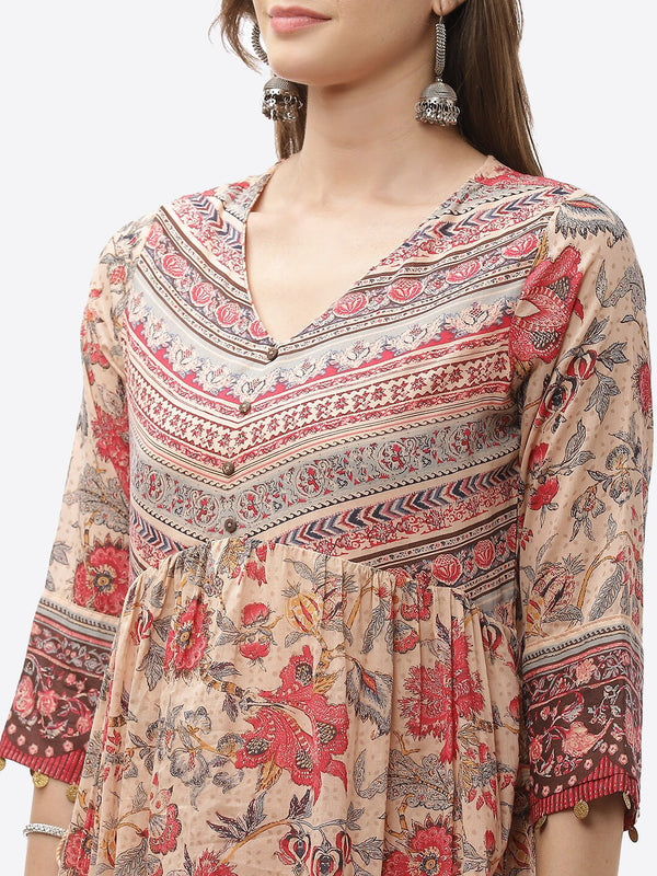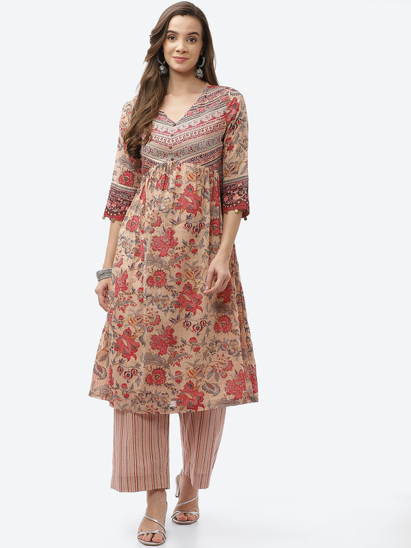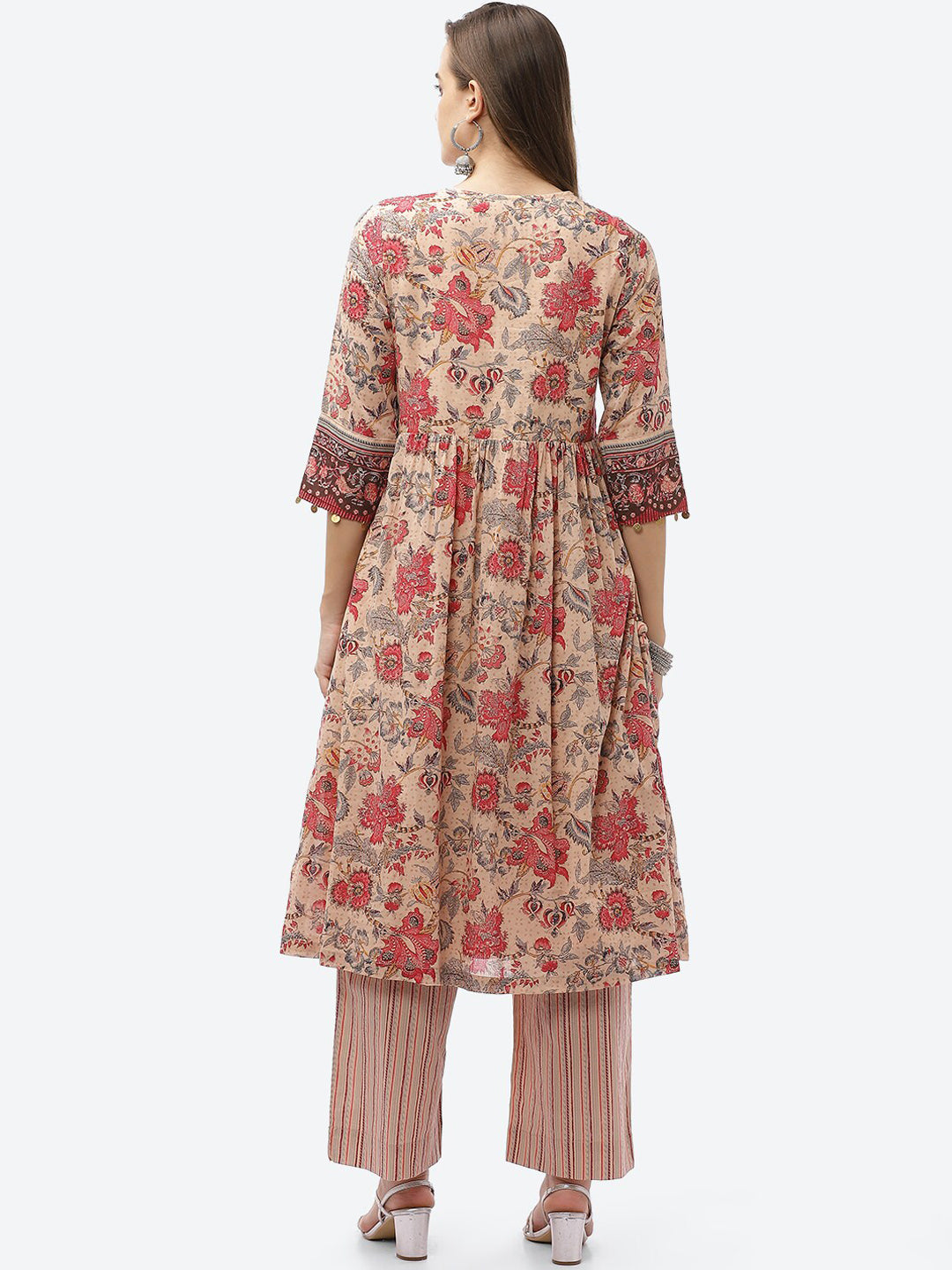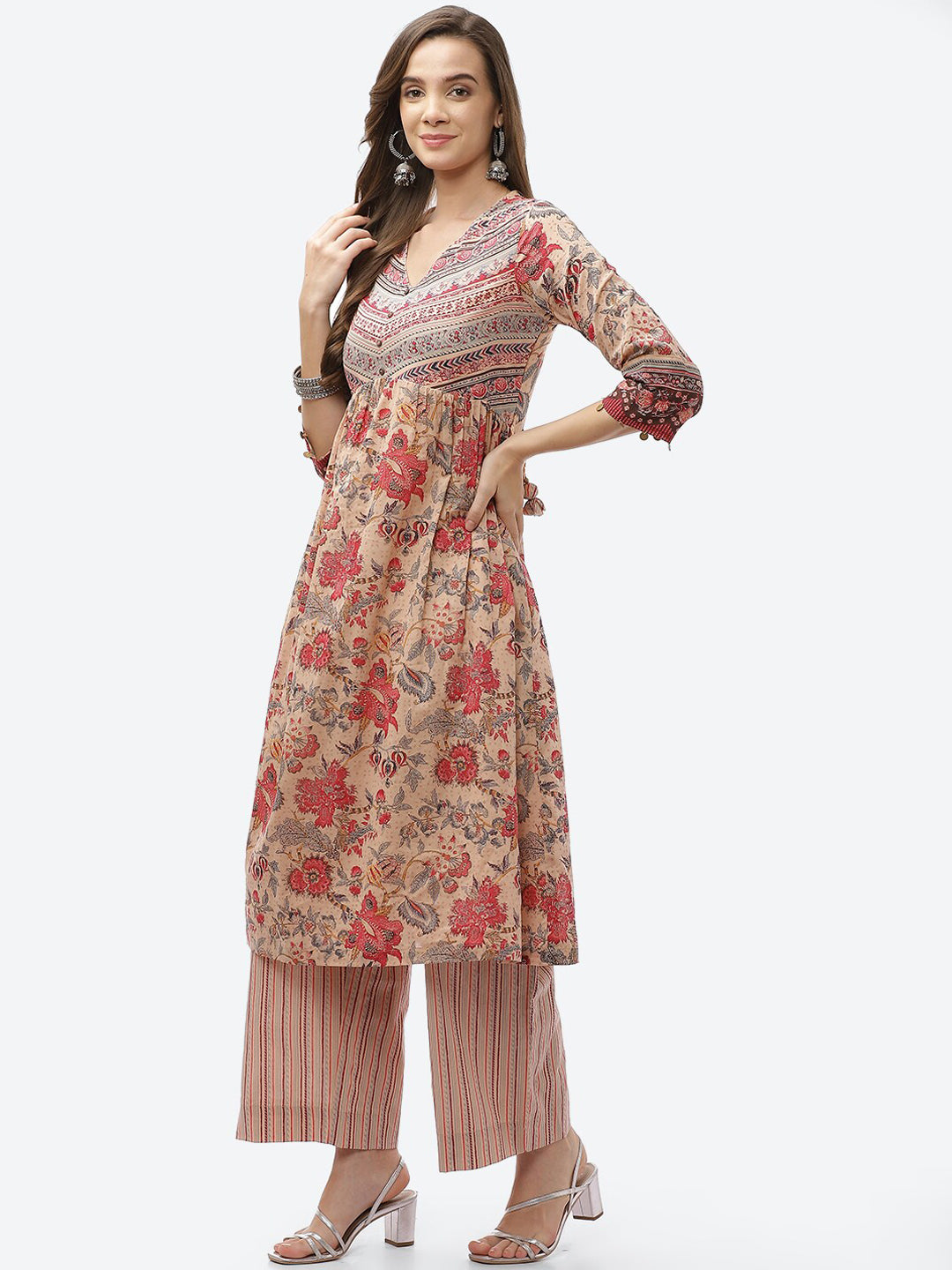 Biba Women Plus Size Beige Floral Printed A-line Kurta with Palazzos Product Details Beige printed Kurta with Palazzos Kurta design: Floral...