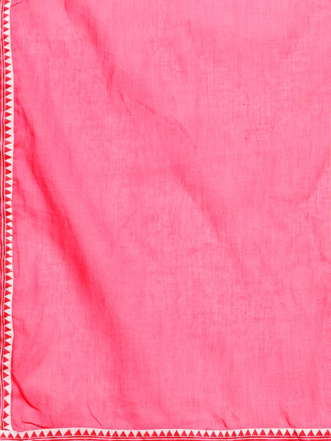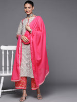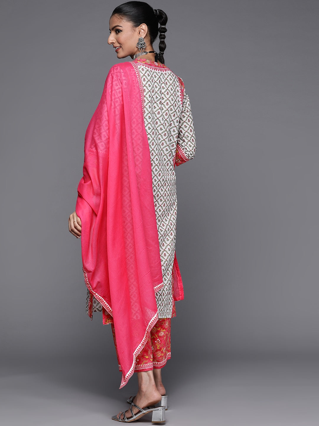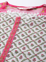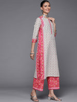 Biba Women White & Pink Ethnic Motifs Printed Cotton Kurta with Palazzos & With Dupatta