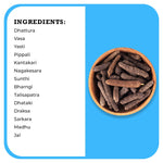 Key Ingredients: Dhattura, Vasa, Yasti, Pippali, Kantakari, Nagakesara, Sunthi, Bharngi, Talisapatra, Dhataki, Draksa, Sarkara, Madhu Jal