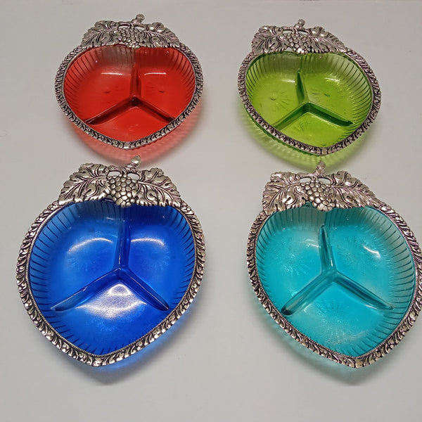 Dry Fruit Platter, 3 Different Spaces, Handcrafted,  Perfect Return Gift, Made with Glass and Oxidized Metal, 1 Piece Dry Fruit Platter is a heart ...