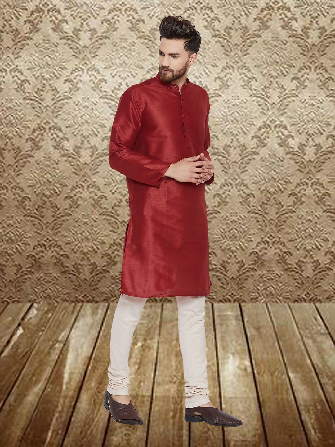 Even Apparels Men's Art Silk Maroon Kurta - Distacart