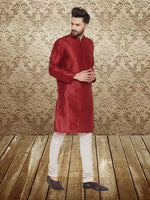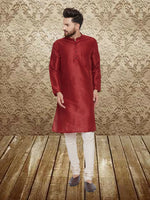 Even Apparels Men's Art Silk Maroon Kurta