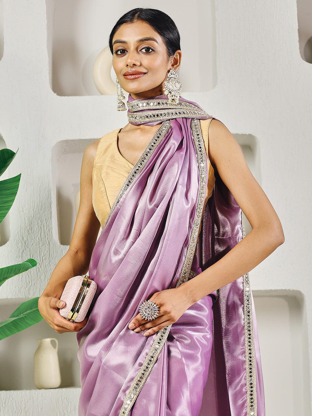 Fab Fashion Light Pink Ready to Wear Saree - XXS
