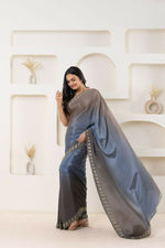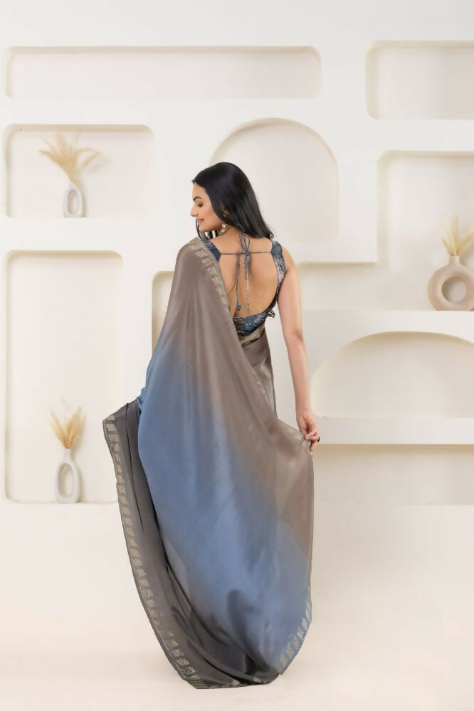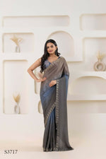 Grey Satin Pedding Designer, Printed Party Wear Ready To Wear Saree - Femina