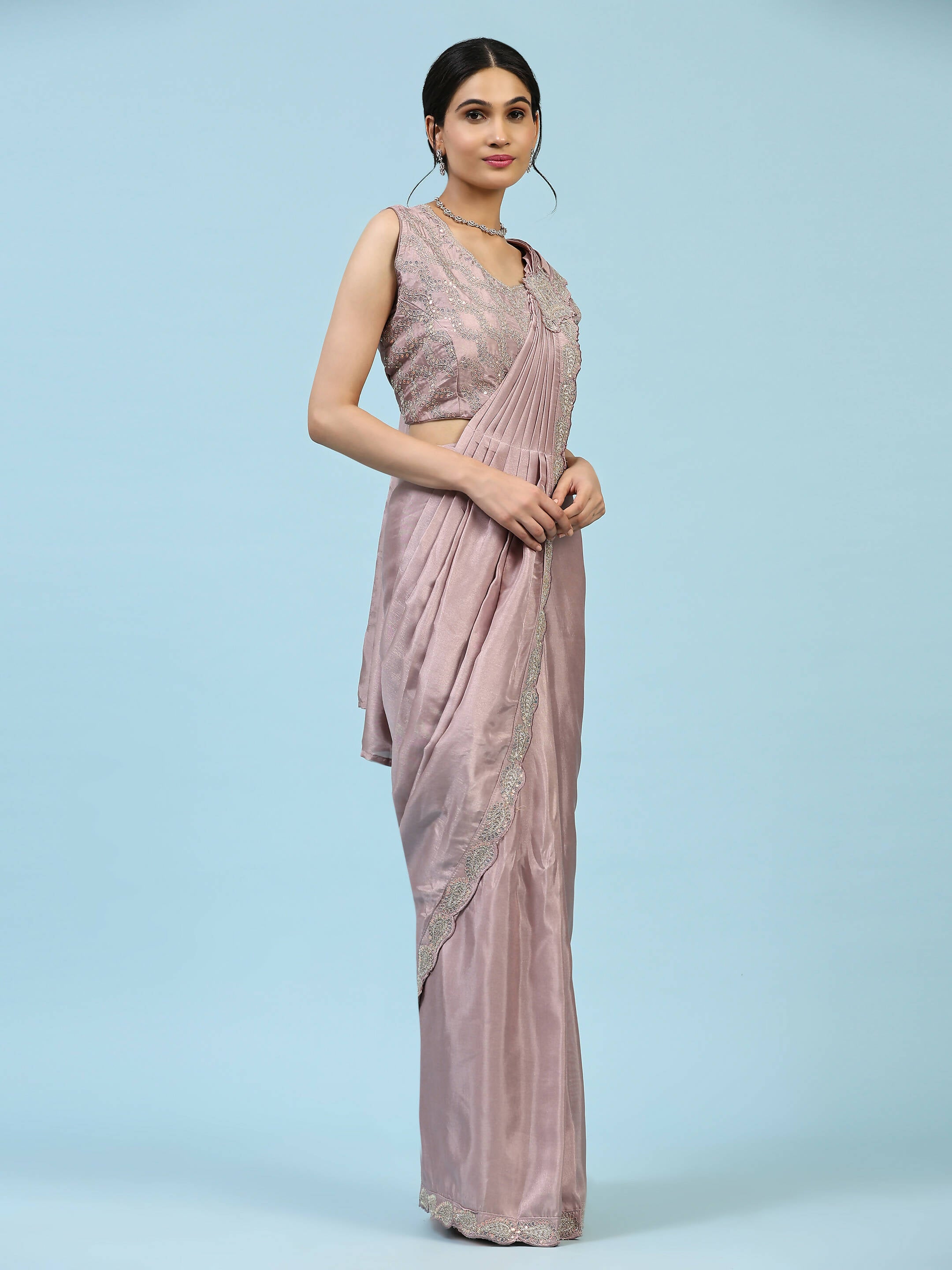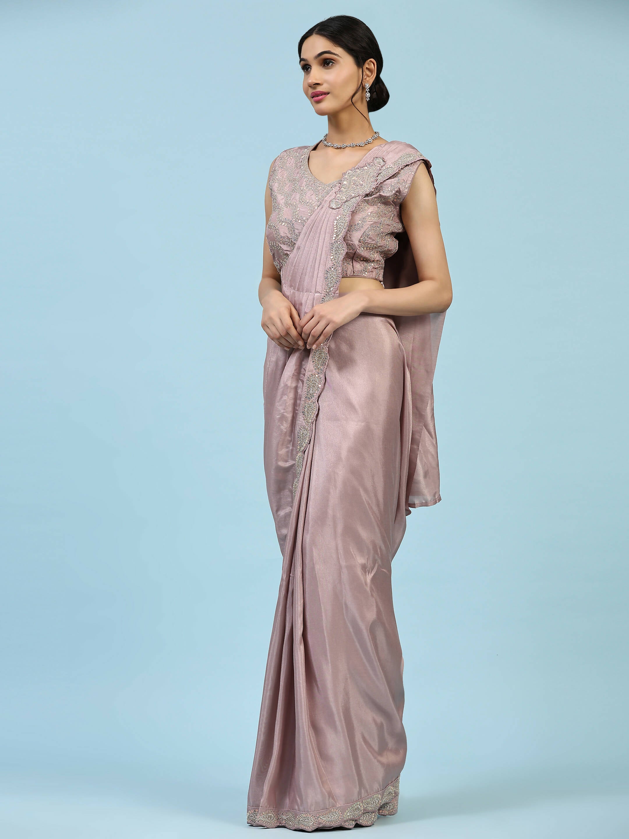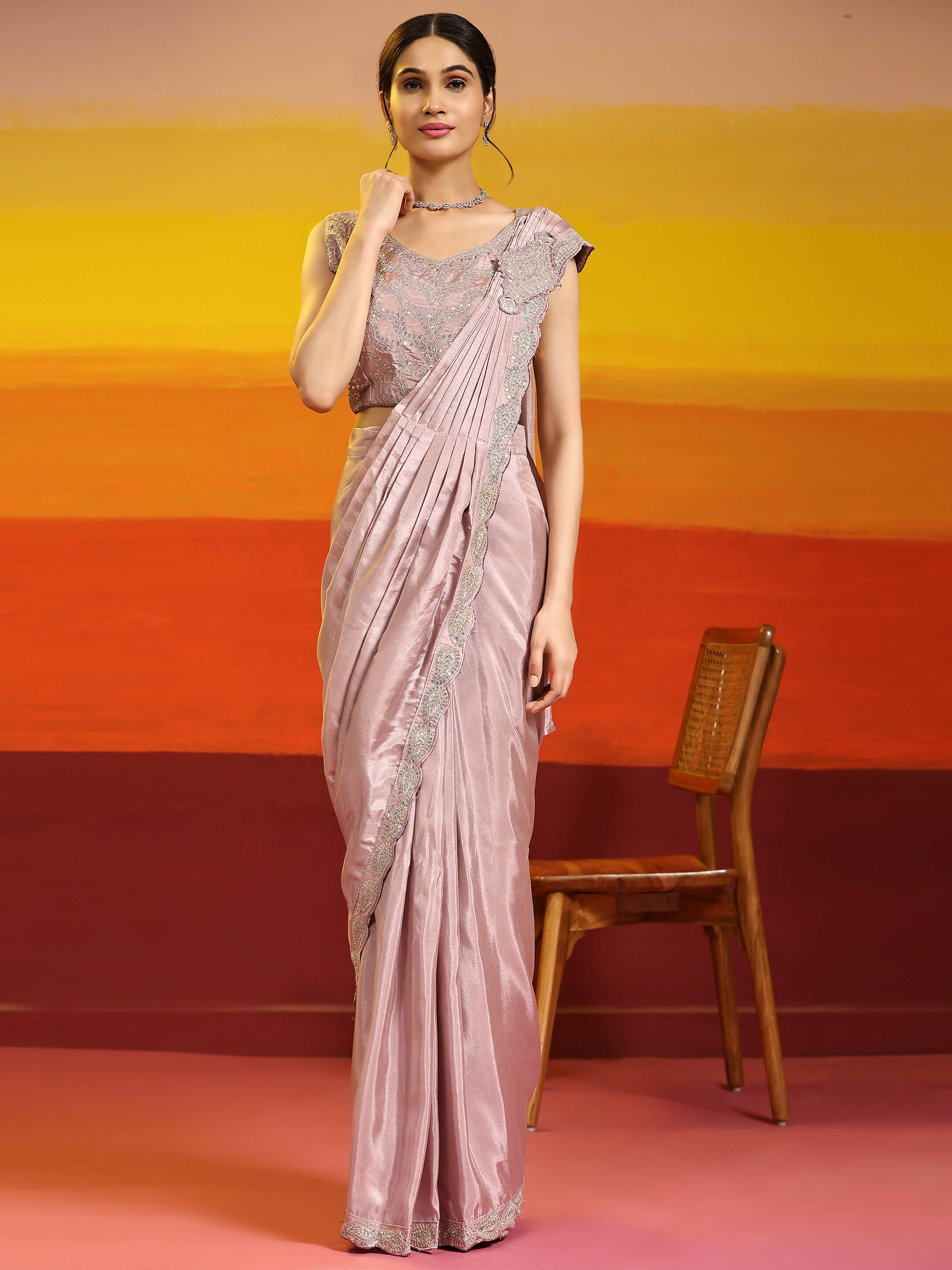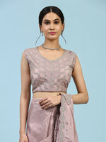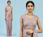 Lavendar Silk Satin Plain Ready to wear Saree with stitched Blouse - Vrinda
