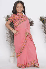 Little Bansi Floral Print Ready To Wear Saree And Floral Blouse - Coral Additional Information: Color: Coral Gender: Girl Material Info/Uppe...