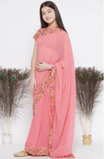 Little Bansi Floral Print Ready To Wear Saree And Floral Blouse - Coral - 0-3 M