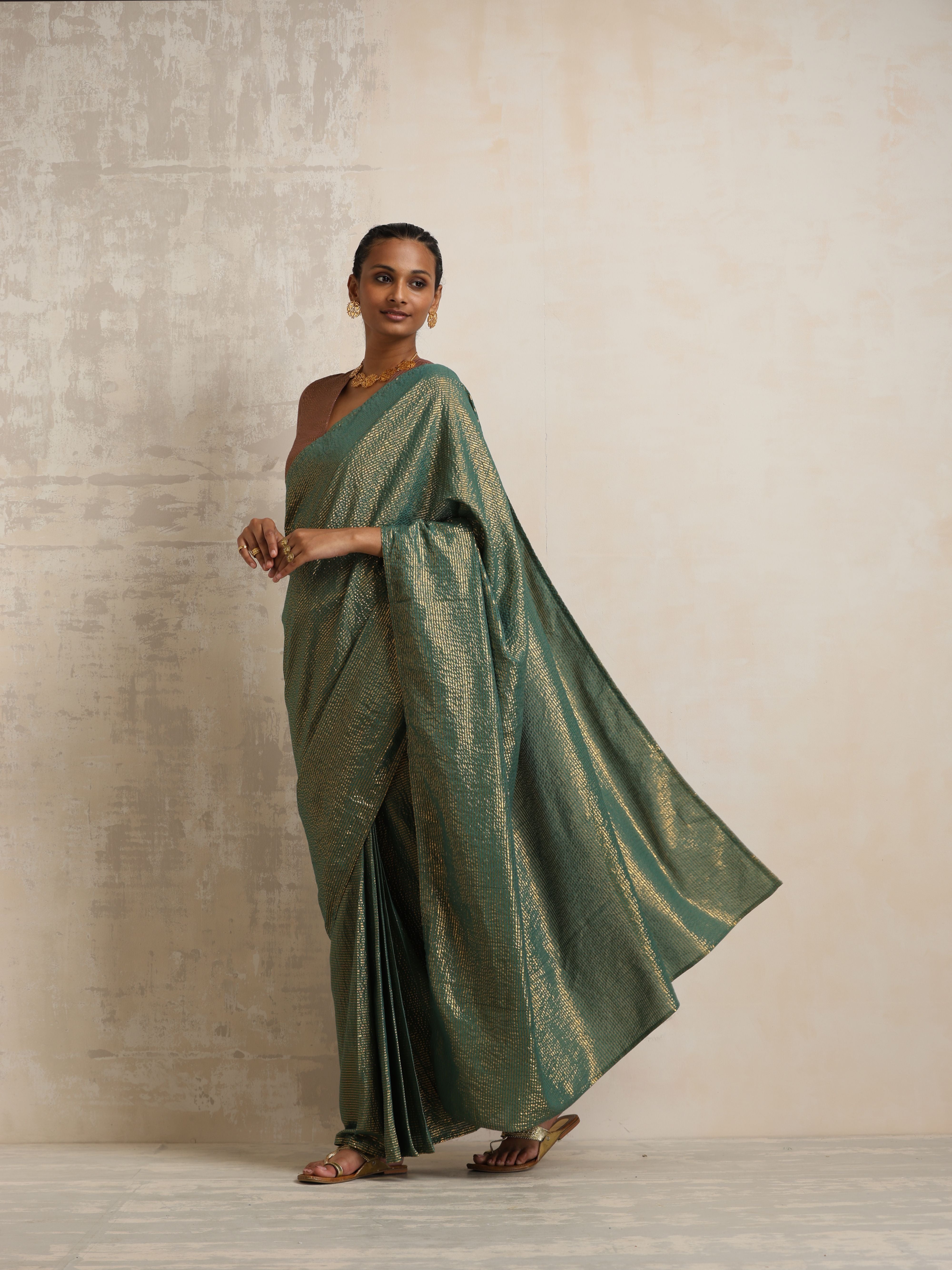 trueBrowns Dark Green Gold Lurex Ready To Wear Saree