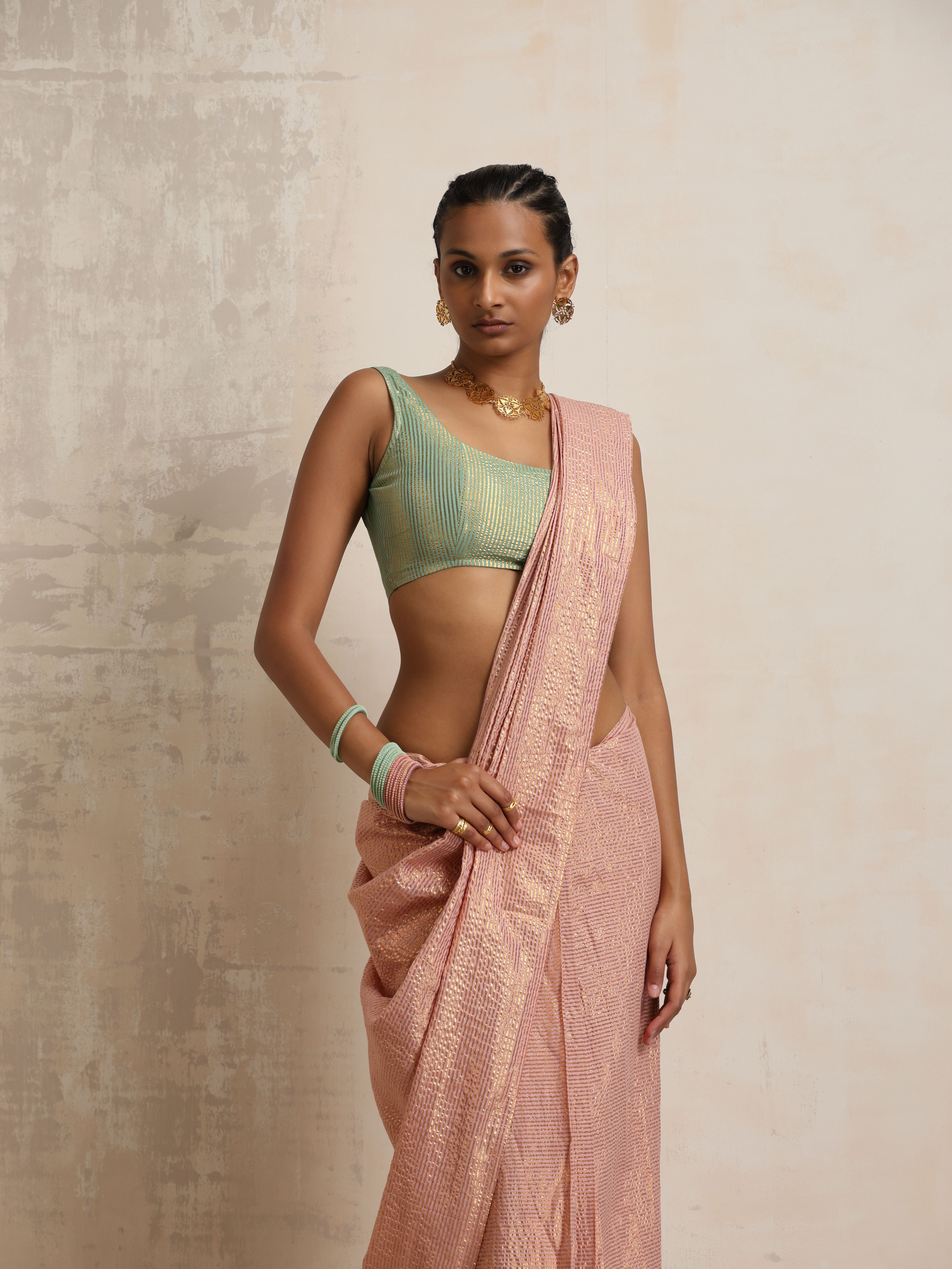trueBrowns Pink Gold Lurex Ready To Wear Saree