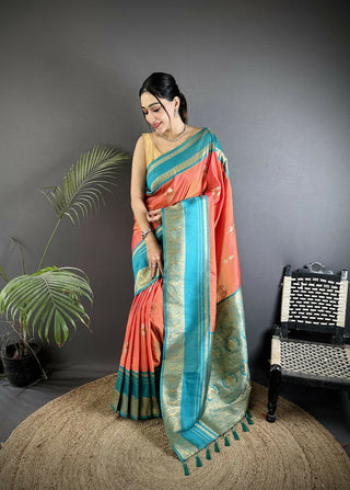 Joban Fashion Peach Banarasi Soft Silk Woven Saree