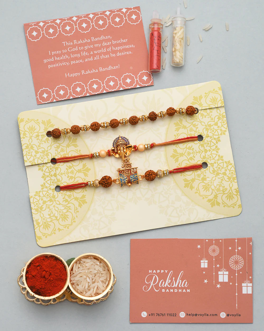 • Sales Package: 3 Rakhi,1 Pack of Roli-Chawal,1 Card