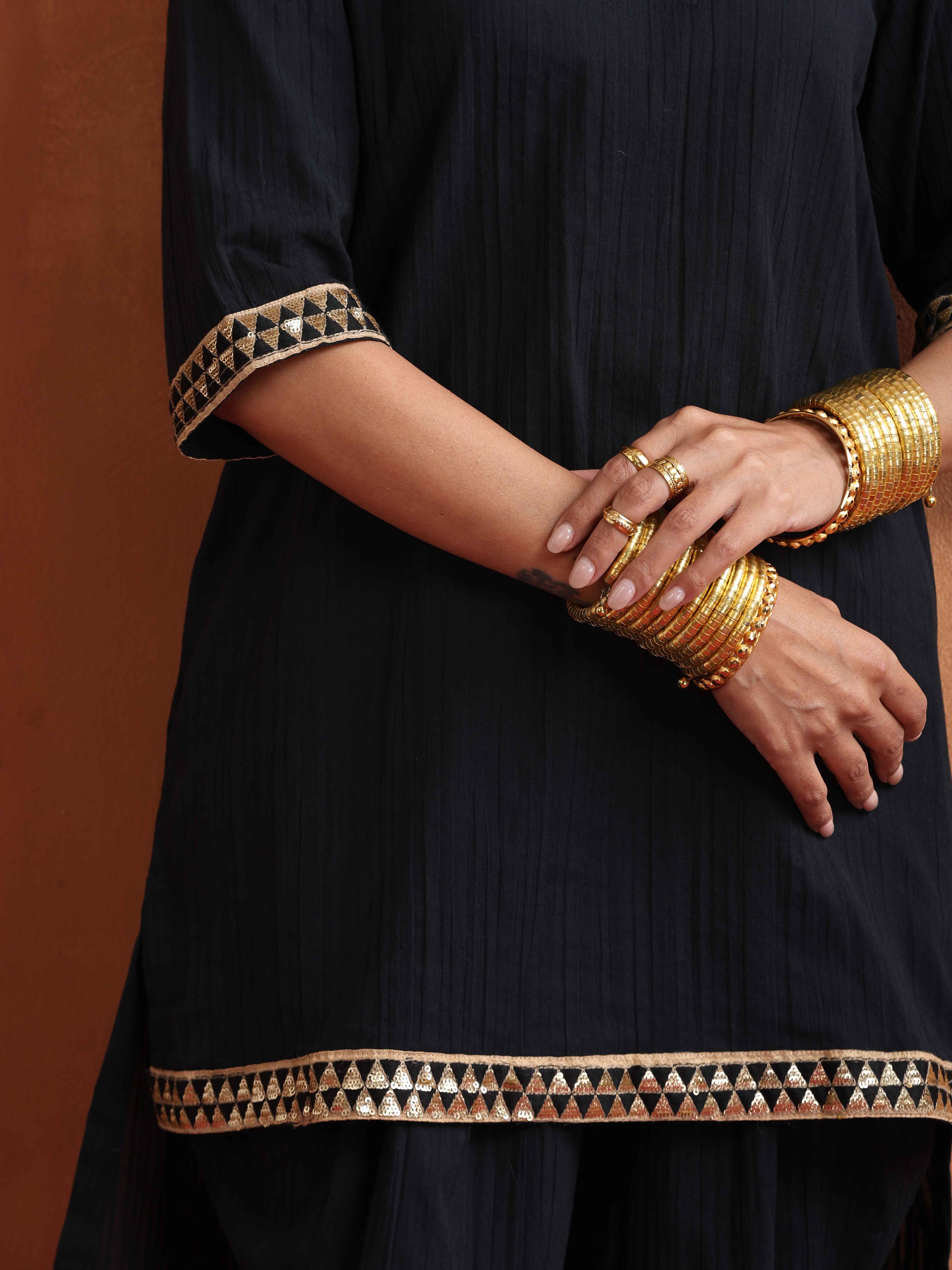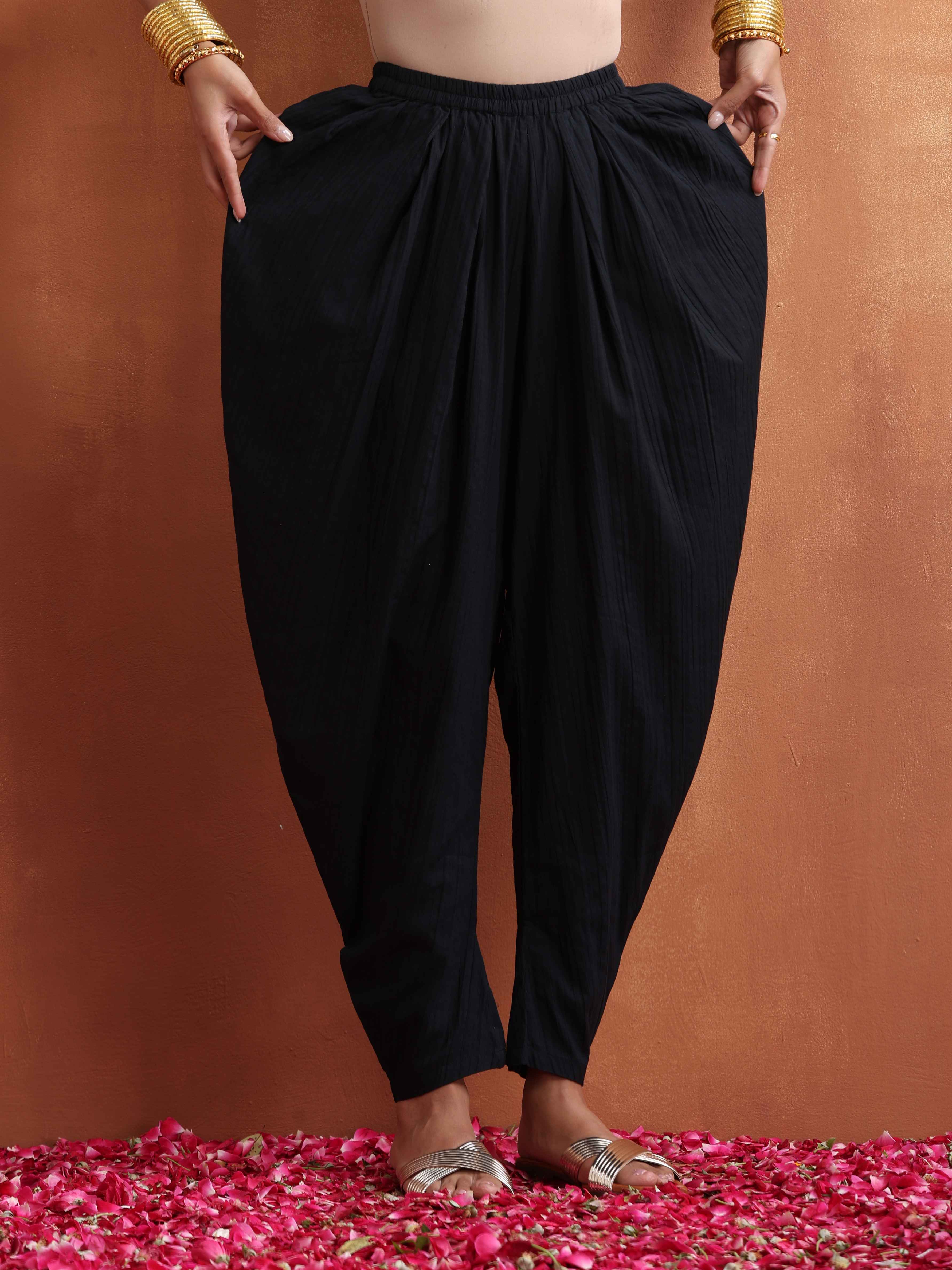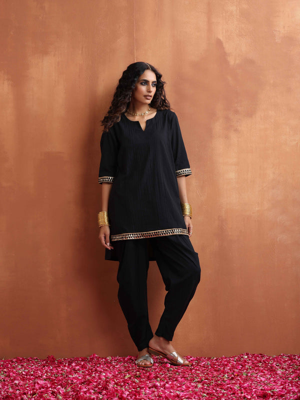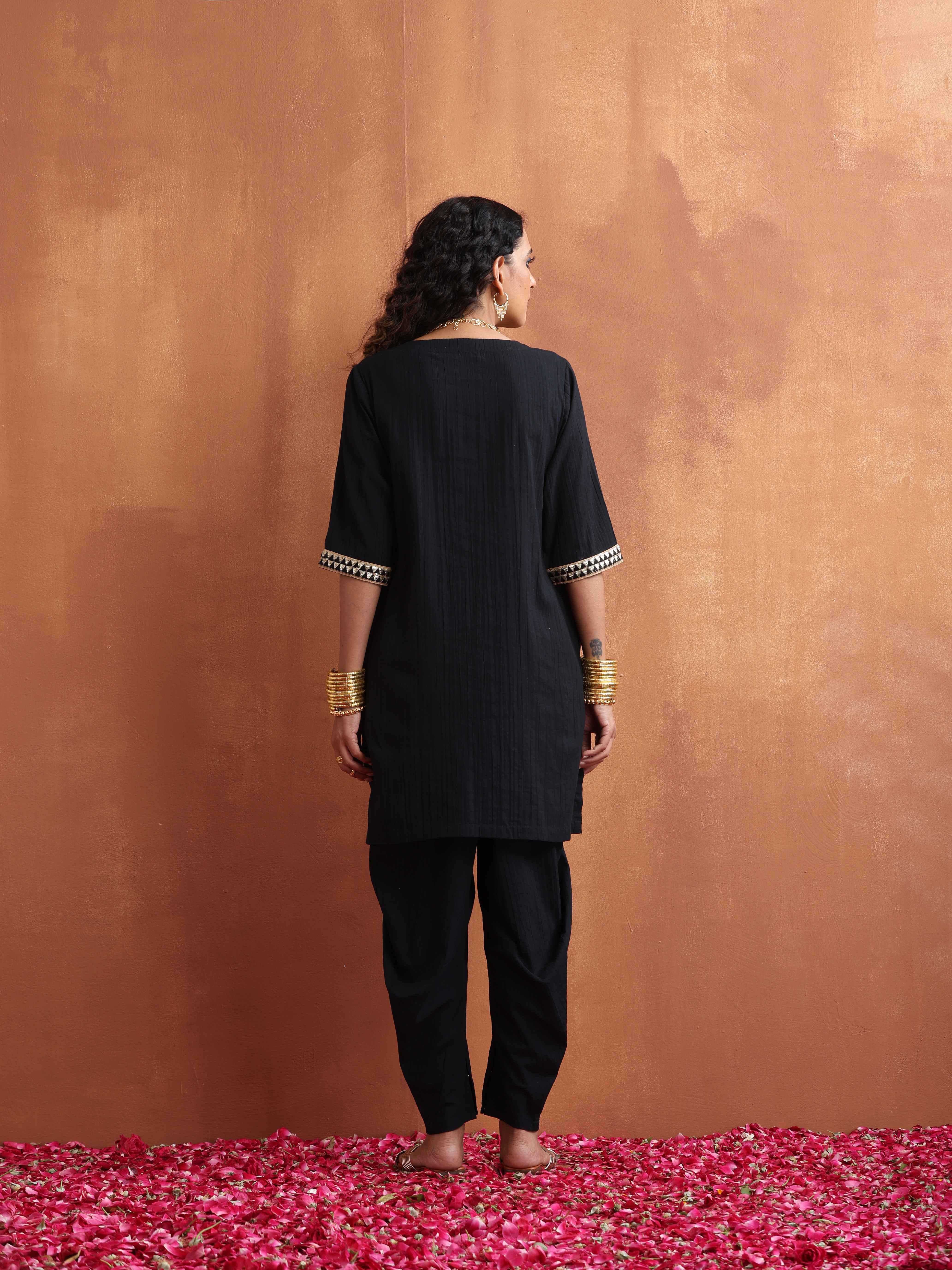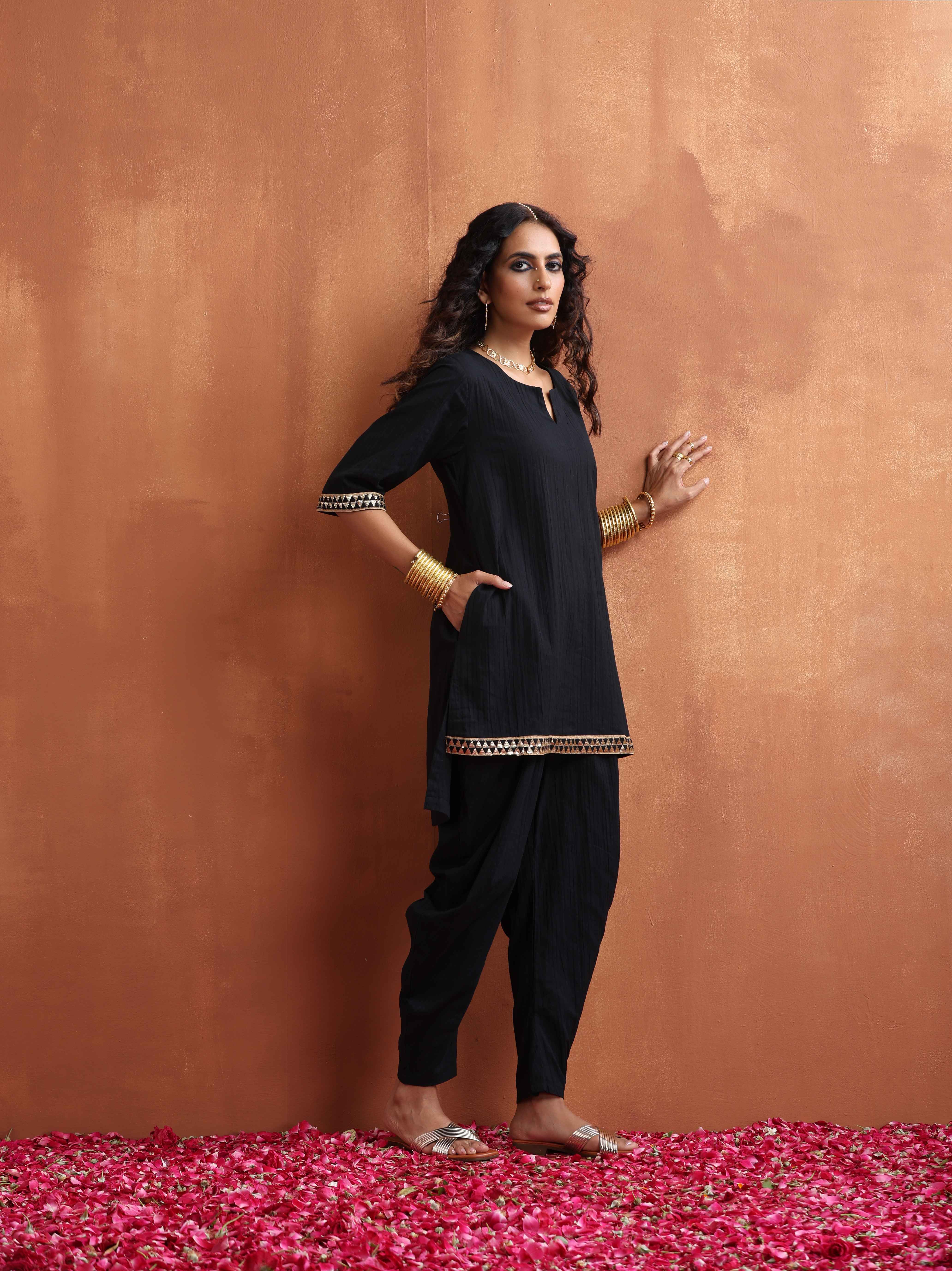 • Elevate your style with this black cotton kurta paired with black cotton dhoti pant