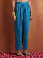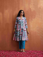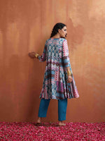 • Elevate your style with this blue abstract floral print short anarkali kurta paired with blue cotton pant