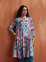 trueBrowns Blue Print Flared Anarkali Kurta Co-ord Set - 2XS