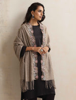 trueBrowns Beige Embroidered Woollen Stole - Freesize