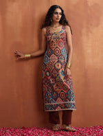 • Elevate your style with this cola geometric floral print straight kurta paired with cola pant.