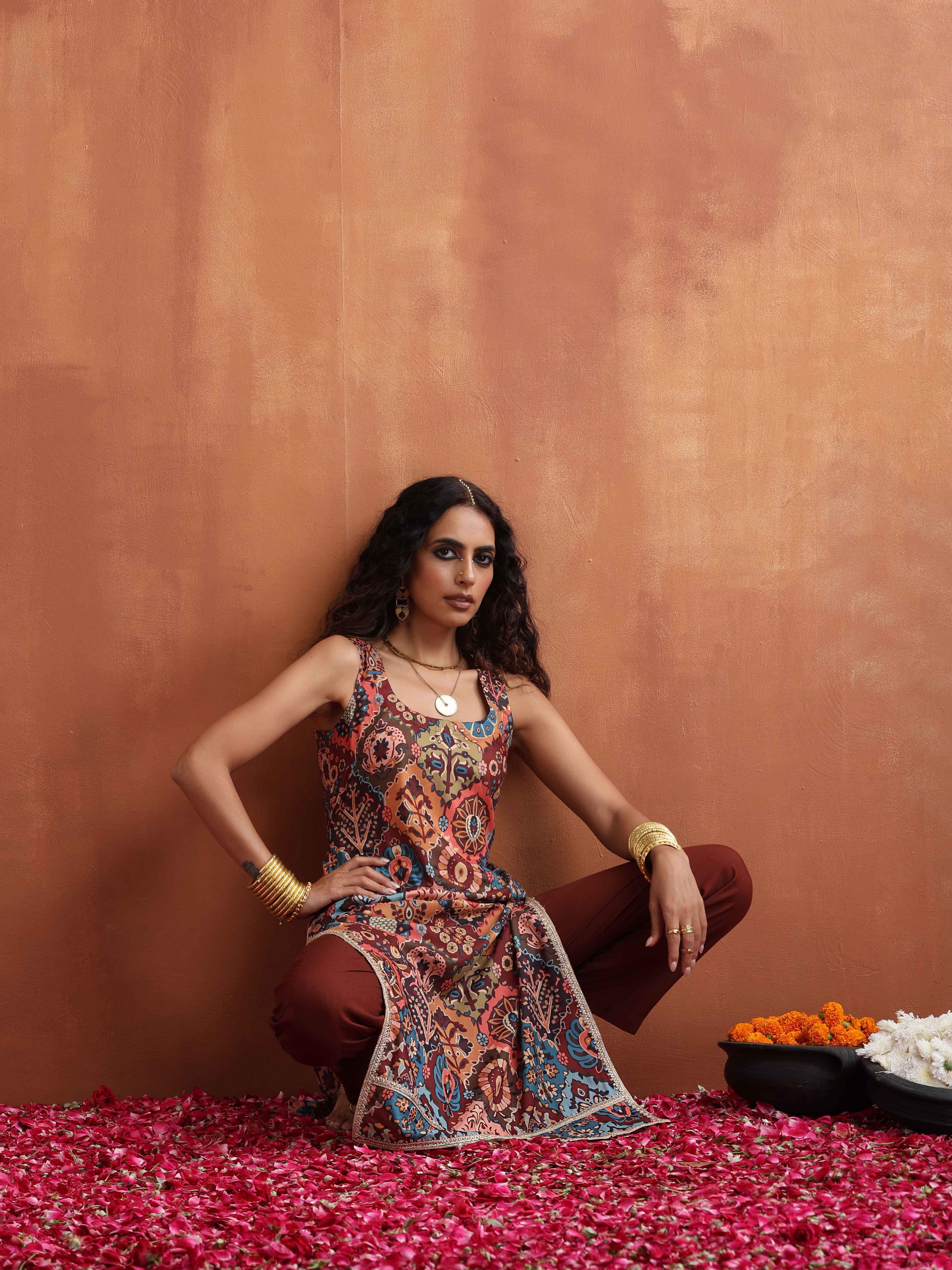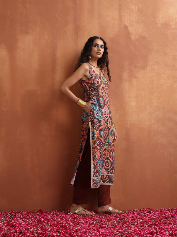 trueBrowns Cola Print Straight Kurta SetDescription Elevate your style with this cola geometric floral print straight kurta paired with cola pant. ...