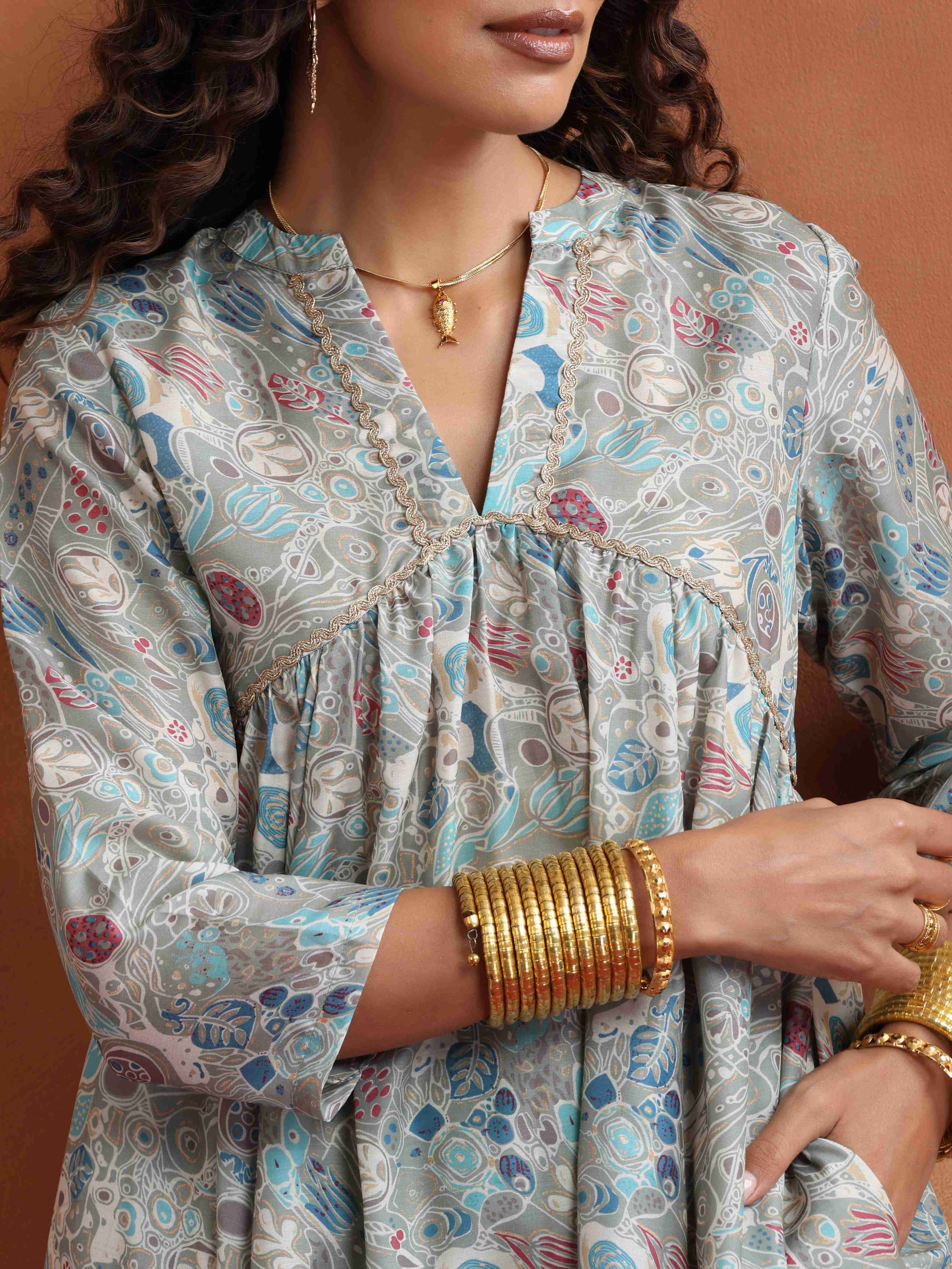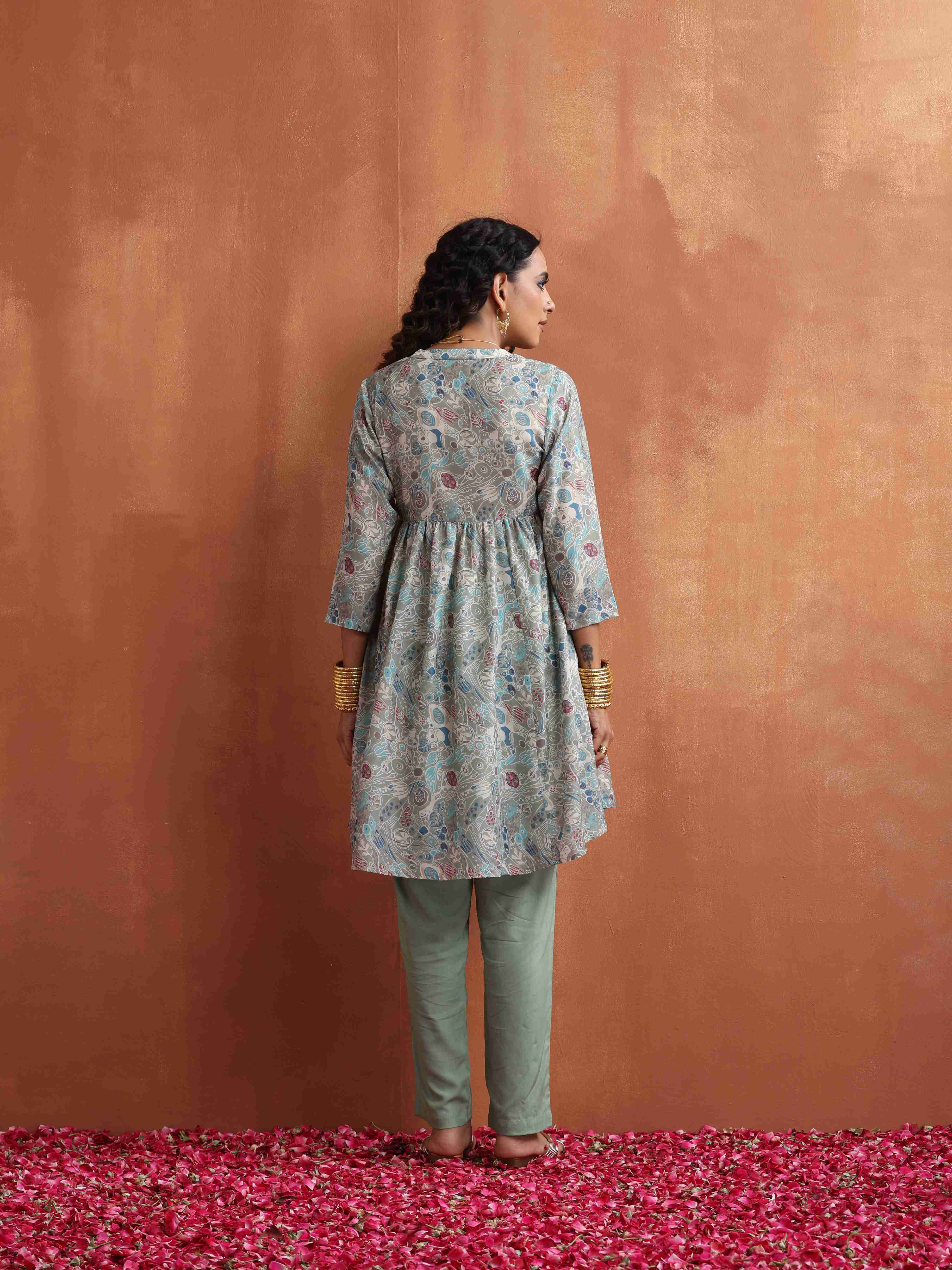 trueBrowns Green Print Flared Kurta Co-ord Set