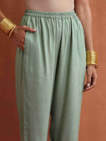 trueBrowns Green Print Flared Kurta Co-ord Set - XS