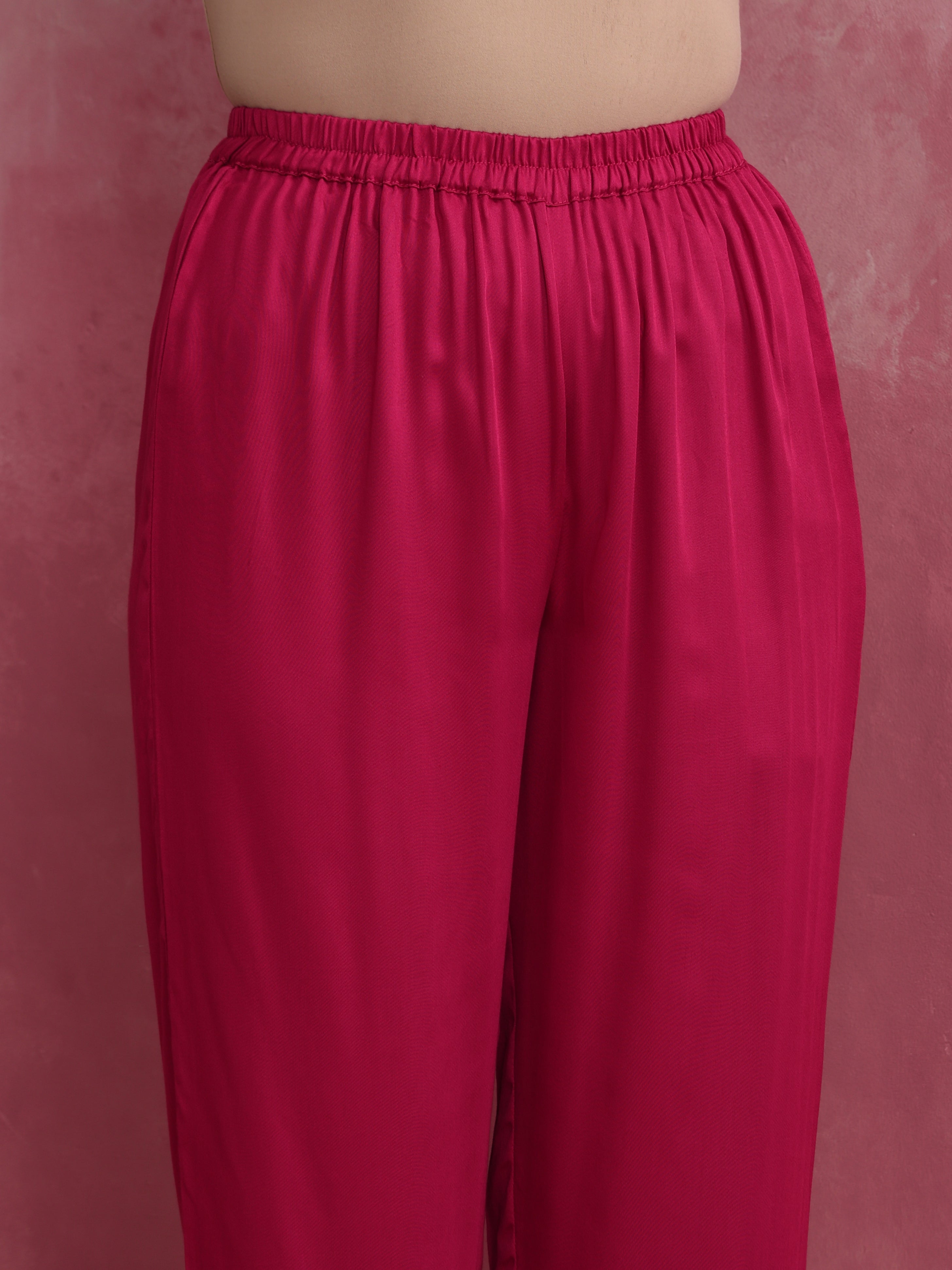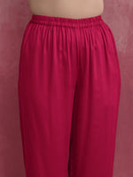 trueBrowns Magenta Highlow Modal Kurta SetDescription Elevate your style with this pink modal high low kurta featuring back placket with buttons. P...
