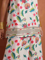 • Elevate your style with this Off White floral print kurta paired with Off White floral print sharara.