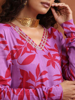 trueBrowns Purple Print A-line Kurta Set - 2XS