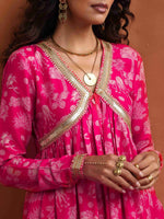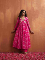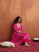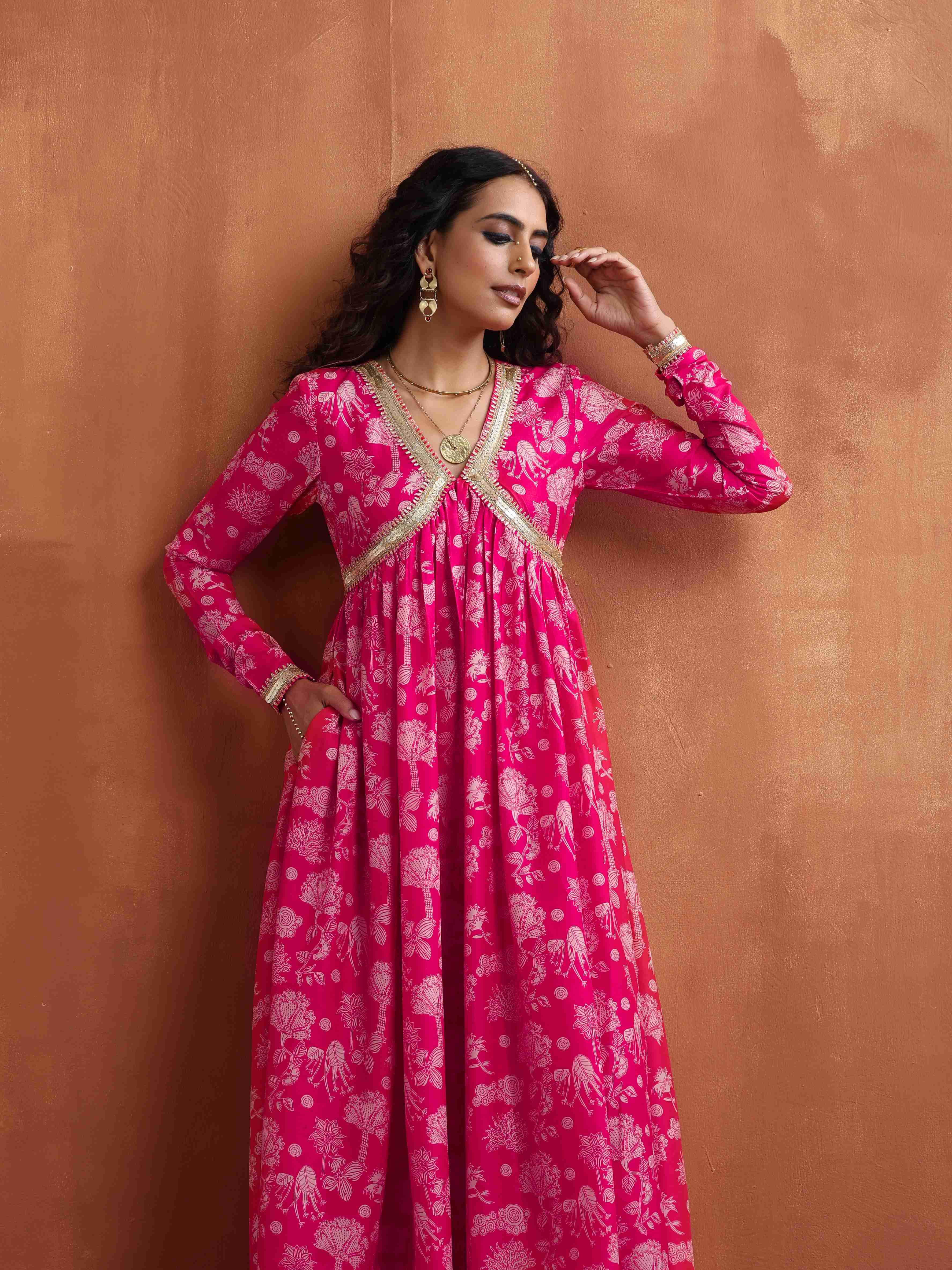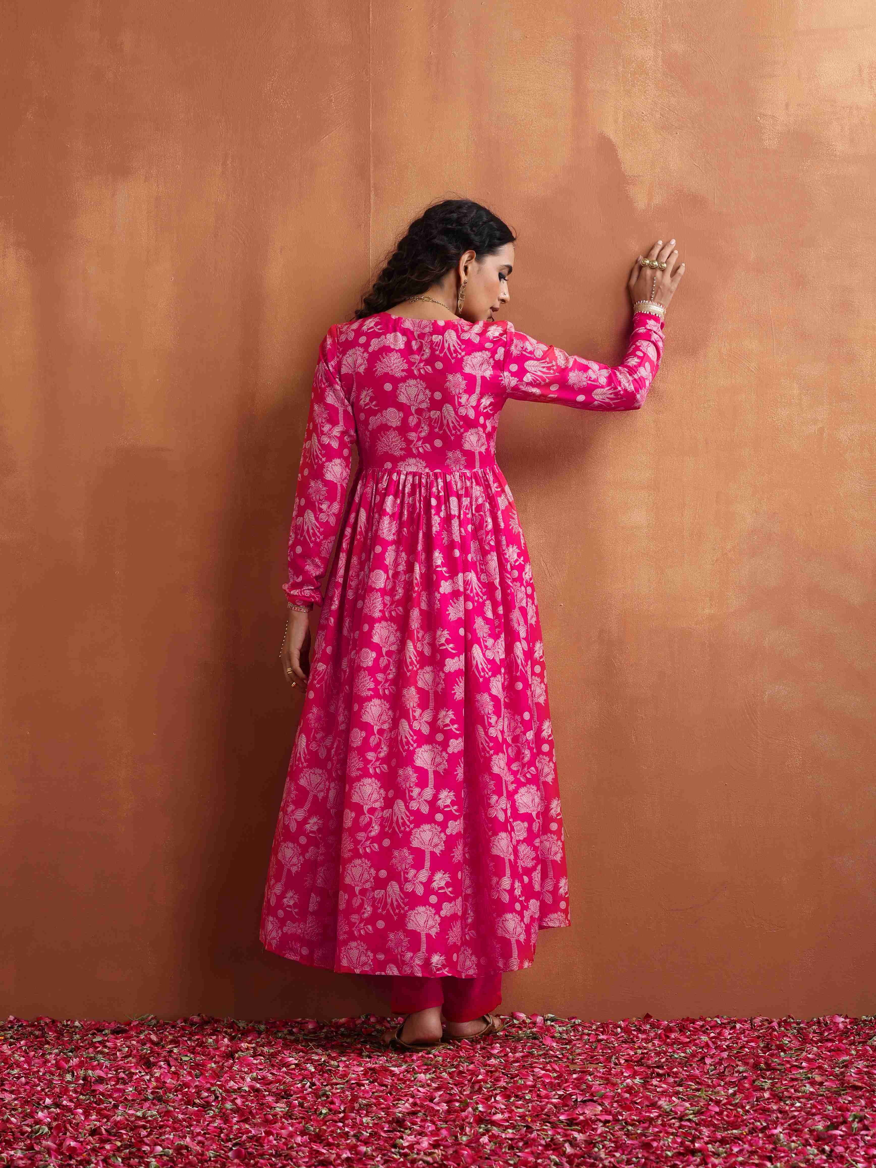 trueBrowns Red Print Flared Anarkali Kurta Set