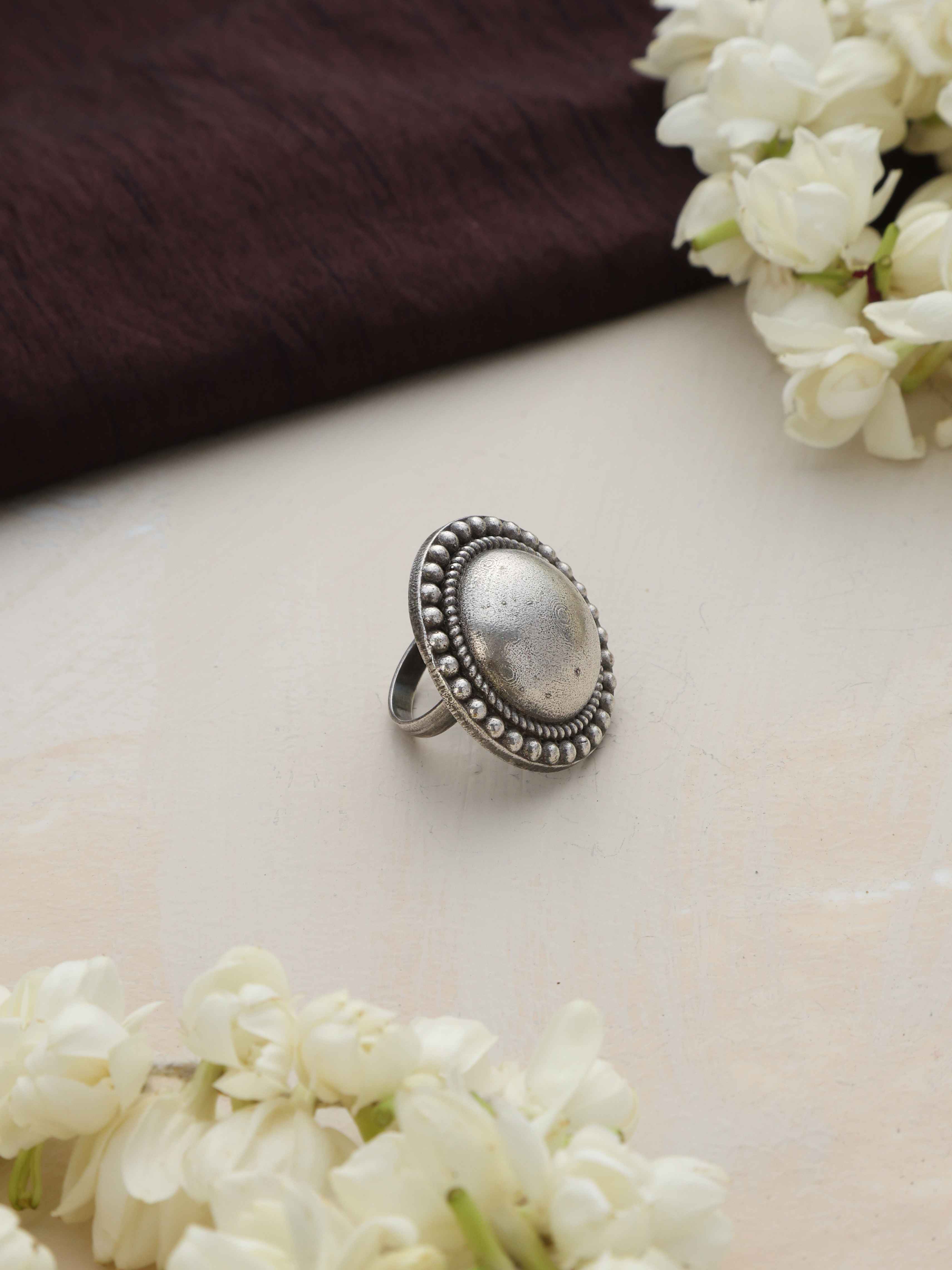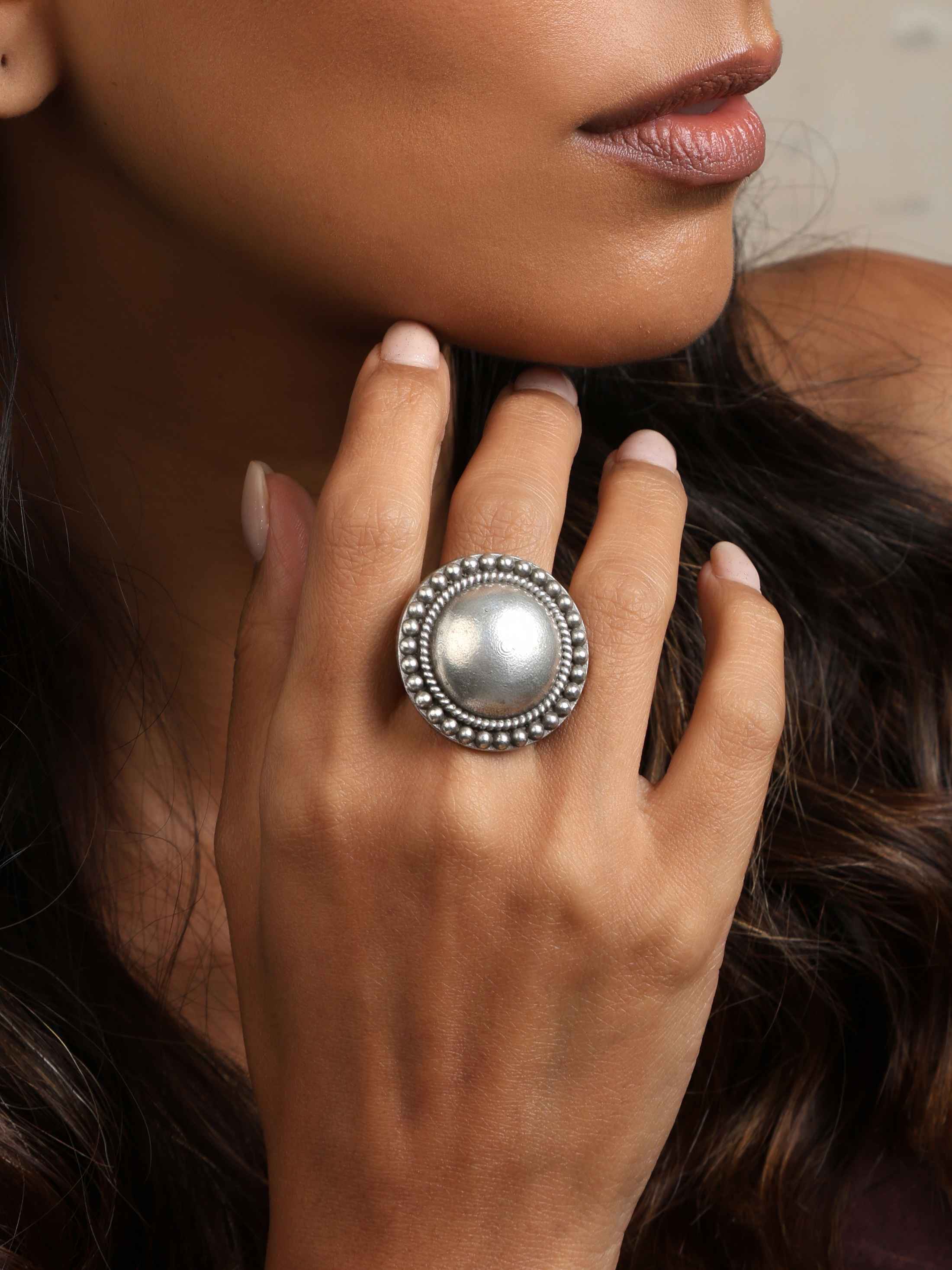 trueBrowns Silver Tone Dome RingDescription Silver dome ring with adjustable slip-on closure. Style it with a Kurta, Co-ord set, or Saree to accent...