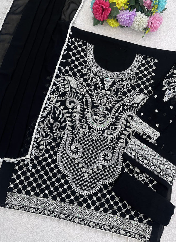 Vegaa Fashion Black Georgette Embroidered Beads Designer Salwar Suit
