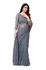 Vamika Ethnic Fire Grey Pearls Net Saree