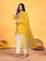 Joban Fashion Mustard Cotton Premium Pure Viscose Print Dola With Handwork Kurta set - 36
